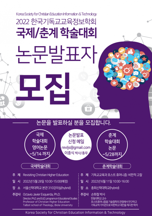 한국기독교교육정보학회 2022년 국제학술대회에 (영어)논문을 발표하실 분을 모집합니다.
